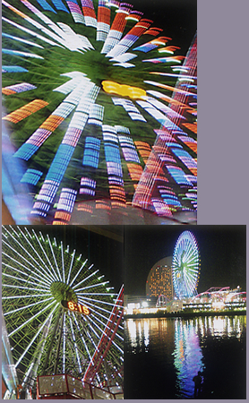 観覧車は、昼・夜と時間によって背景により、違った景色を楽しませてくれますが、マジシャンがとらえる観覧車はなんともいえない不思議ワールドです。こんな光線見たことない。幻想的でミラクルです。また、水面に移りこんだ観覧車のライティングもなんとも不思議。
