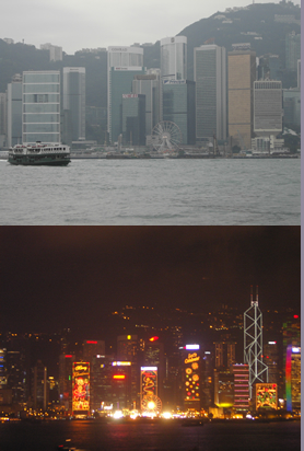 香港島の岸に立つ観覧車。 きっと間近に見ればそれなりにデカイに違いないが、香港も高層ビルの町。 観覧車だけが際立つということはなく周囲の風水?ビルたちといいバランスにある。 昼間の顔、夜の顔。 観覧車は夜ひときわ輝く。くるくると回り続けるその様を追いかけているだけで時間が過ぎるのを忘れてしまう。 中国式?のど派手なライティングやイルミネーションとともに、新年を祝う観覧車。 四角い、長いビルばかりが目につく都会で、丸い存在はバランス的にもよい。これも風水的に必要であったのかもしれない。 いつも世界のどこへ行ってもこのルーをみつけるたびに、自分の分身がその地にできたような気持ちになる。 そこに観覧車を創る人の気持ちは何だろう?時代の、幸せの、平和のシンボルであろう。 スターフェリーに乗り、ずっと観覧車を見入っていた。九龍島から香港島へ向かうとき、香港島から離れるときそして九龍島からも対岸を眺める。 世界が平和であるように、そして明るく元気な新年を過ごせるように。 そして、周囲にとってバランスのよい存在でありたい。 そんなことを願う新年のスタートであった。