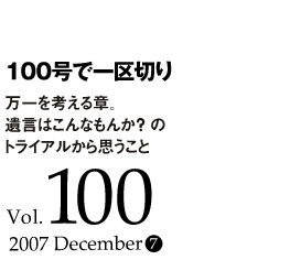 さる2007年12月のNY行きからの帰りのフライト。44歳になった記念に今回こそ、遺言を書いてみようとノートを取り出す。うーん。書くまでにいろんな情景が浮かんでしまう。遺言とは自分がいない状態を想定するということ。それは誰が読むと想定するんだ。本当に自分がいなくなる日が来るんだろうか・・などなど考えていたら、みるみる涙で顔がくちゃくちゃになってしまい、自分のいない世界を想像するのは、悲しいもんだと思った。