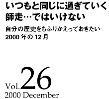 私は、改めてこの2000年のカーテンコールを前に、自分がこの大きな節目に生きていられることは、とてもラッキーであると感じている。平和ないい時代に生まれた。20世紀の最大の事件は世界大戦であろうが、それも体験することなく、プラスの戦渦の中で育ってきたと思う。豊かなモノに囲まれて、元気な日本に守られて…。しかし、21世紀の到来を目前に、いろんなことが変わろうとしていることを最近感じる。環境の変化を意識するが故に、自分のありようが見えてくる。そんな気がする。