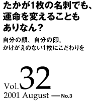 最近では、学生やフリーターと呼ばれる人でもマイ名刺と呼ばれるものをもっていることが多い。お友達に会うときにも交換したりするそうだ。しかし、私の時代?の場合、正統派。22歳、会社員になったとき、はじめて総務部長か担当の係長だったか忘れたが、とにかく名刺が100枚入ったプラスチック箱を手渡されたときは、いたく感動したものだ。自分の名前が印字されているものは、当時、学生時代までにはあまりお目にかからない。小学校時代に使った名前のゴム印などは記憶にあるが、自分の名前が入った印刷物はあまり目にしたことがない。しかも「私はこういうものです」と偉そうに差し出すものがあるというのは、かっこいい。一人前になった気分である。名刺とは、物心ついた最初のアイデンティティーツールなのかもしれない。