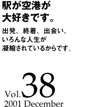 私は「駅」「空港」「港」へ行って、ずっとたたずんでいるのが好きである。とくに、いろんな種類の列車が行きかうターミナルが好きである。列車や飛行機を見て、「あれはどこへ行くのだろう。」と想像しているだけで楽しいものだ。