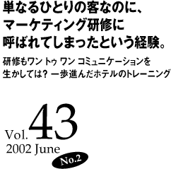 さて、本題に戻る。あのホテルは研修にお客を呼ぶというプログラムを組んだ。お客の生の声を聴くということが、とても有効であるという判断である。偉い先生、外部講師を招くことは簡単であるが、現場を知っている、利用客の話から生きた教訓を得ようとするその姿勢は、さすが一流のサービス業であると感心せざるを得ない。今回の企画はONE