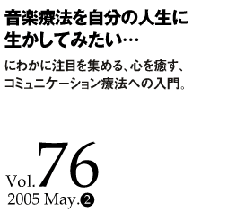 さて、この春から気になっていた勉強を少しずつ開始している。それは今書いた「音楽療法」である。コミュニケーションクリエイターとしては大変気になる分野。現代、鬱病のビジネスマンが増えている、登校拒否の子どもが増えている、低年齢の非行が増えている。何事も多忙で機能的で高効率を求めすぎ、情報過多になり、将来が不安に思えてしまう昨今、心のバランスをなくしてしまうことはよくあるだろう。自分の生き方を模索する以前に、今の立ち位置さえ見えないこともある。そんなバランスの欠如がさまざまな病気をもたらす。